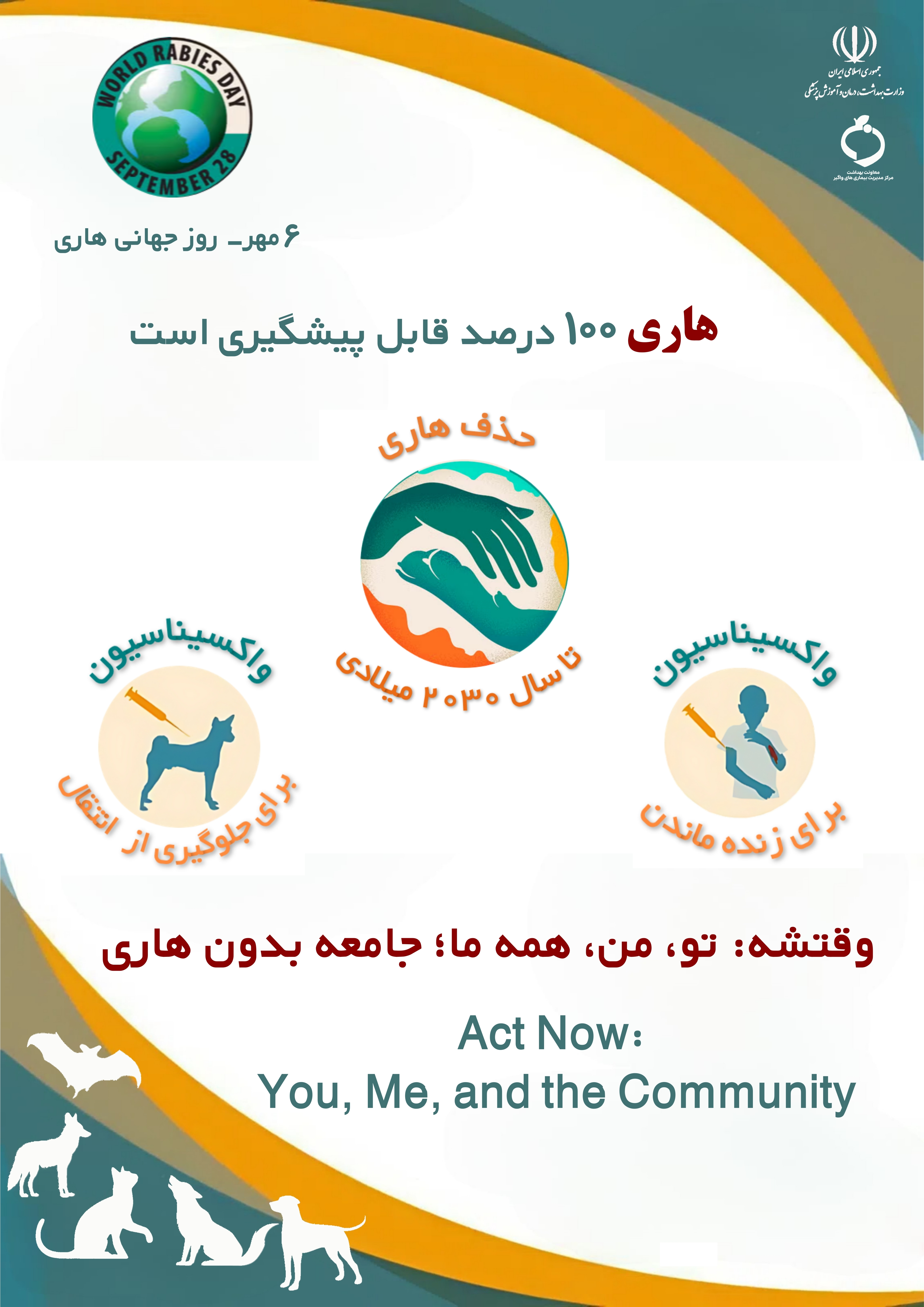 به مناسبت 6مهر، روز جهانی هاری، این روز فرصتی است برای تأکید بر اهمیت پیشگیری، آموزش و اقدام مؤثر در برابر یکی از کشنده‌ترین بیماری‌های قابل پیشگیری در جهان