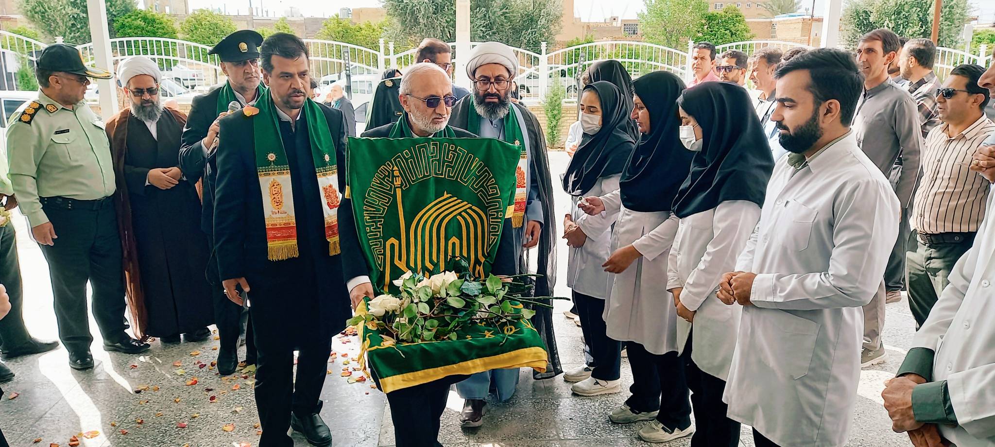 به گزارش روابط عمومی شبکه بهداشت و درمان شهرستان بختگان، همزمان با حضور کاروان زیر سایه خورشید در این شهرستان، خادمان آستان قدس رضوی در پردیس شهدای سلامت حضور یافته و مورد استقبال گرم مسئولان و کادر سلامت قرار گرفته‌اند. ‌در این دیدار معنوی که با زمزمه صلوات خاصه و مدیحه‌سرایی همراه است، کارکنان و  مجموعه کادر سلامت، با زیارت پرچم سبز رنگ بارگاه منور رضوی، ارادت خالصانه‌ی خود را به پیشگاه امام مهربانی‌ها ابراز کردند. حضور این کاروان، حال و هوایی سرشار از معنویت و نشاط روحی را برای مدافعان سلامت به ارمغان آورده است.
