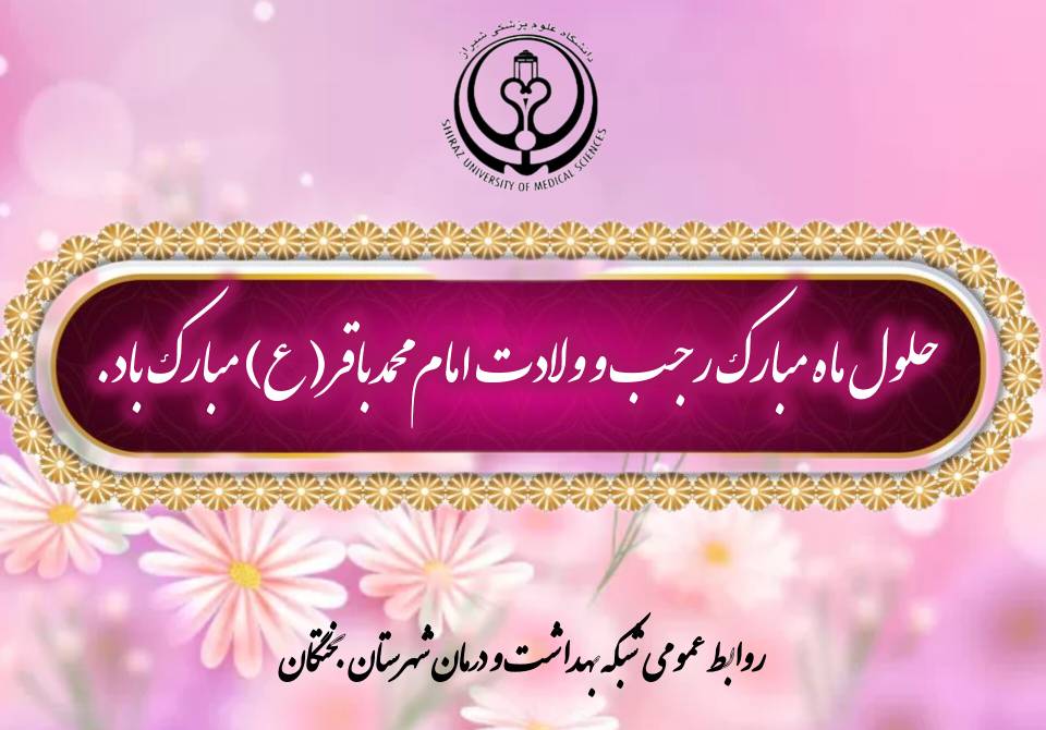 شبکه بهداشت و درمان شهرستان بختگان، ضمن تبریک این ایام نورانی به مردم شریف و مؤمن، همکاران گرانقدر حوزه سلامت و تمامی عاشقان اهل بیت(ع)، امیدوار است که با بهرهگیری از آموزههای امام باقر(ع) و برکات ماه رجب، دلهایمان سرشار از ایمان، آرامش و همدلی گردد. بیتردید، توجه به معنویت و انس با فرهنگ اهل بیت(ع) میتواند ما را در مسیر خدمترسانی بهتر به جامعه و ارتقای سلامت جسم و جان یاری رساند.
